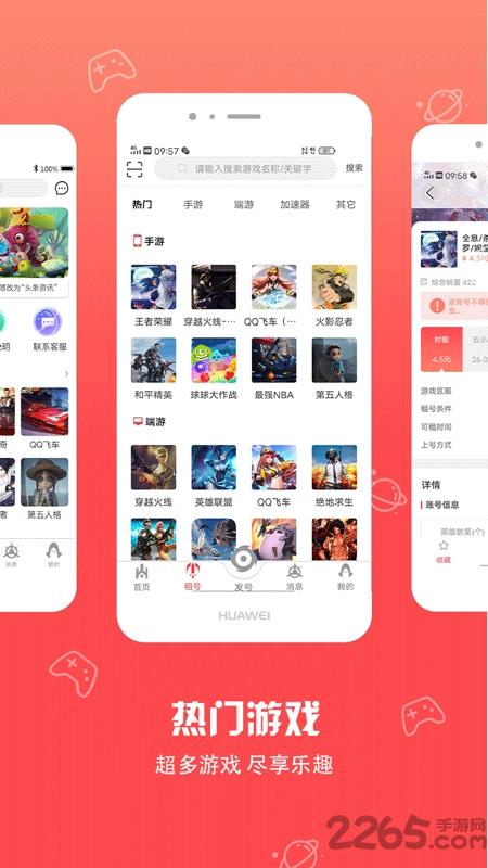 王者荣耀、刺激战场、qq飞车等热门手机游戏应有尽有,赶快租号体验吧。